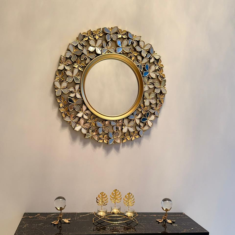 Gold Rose Mirror | Luxury Floral Accent Wall Mirror