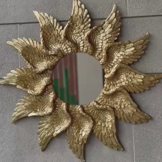Inspired by the graceful unfurling of angelic wings and the brilliant warmth of the sun, this unique gold wall mirror becomes an instant focal point, adding depth, light, and an undeniable touch of luxury to your home.