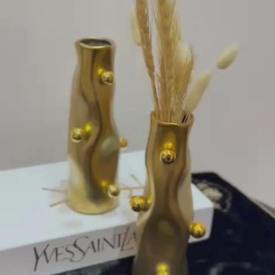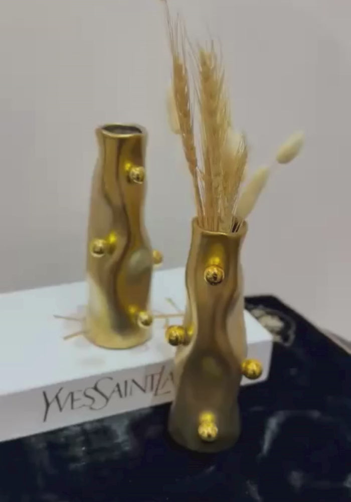 These Curved Decorative Vase with Gold Accent is a perfect blend of contemporary design and sophisticated elegance. Crafted from high-quality materials, these vases feature graceful curves and elegant gold accents, making them an ideal addition to any modern or minimalist décor.