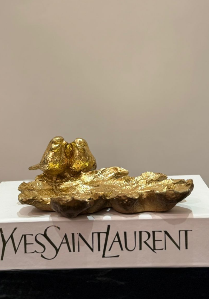 The Sparrow Tray is a beautiful blend of elegance and nature, featuring a delicate sparrow bird perched atop a golden leaf. The high-quality resin and gold finish bring sophistication to your décor while adding a touch of warmth and charm. This tray is not only a decorative piece but also functional, perfect for holding small accessories or as a standalone accent on your coffee table, side table, or console.